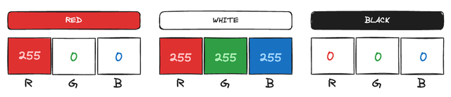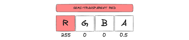 This concept extends to 4-D vectors, such as RGBA, where the fourth component “A” stands for alpha (transparência). A semi-transparent red poderia ser [255, 0, 0, 0.5]